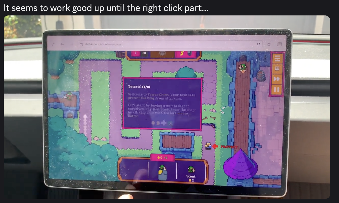 Over the past week, I got a pretty funny feature request. Someone sent me a video of them trying to play the game in a Tesla!